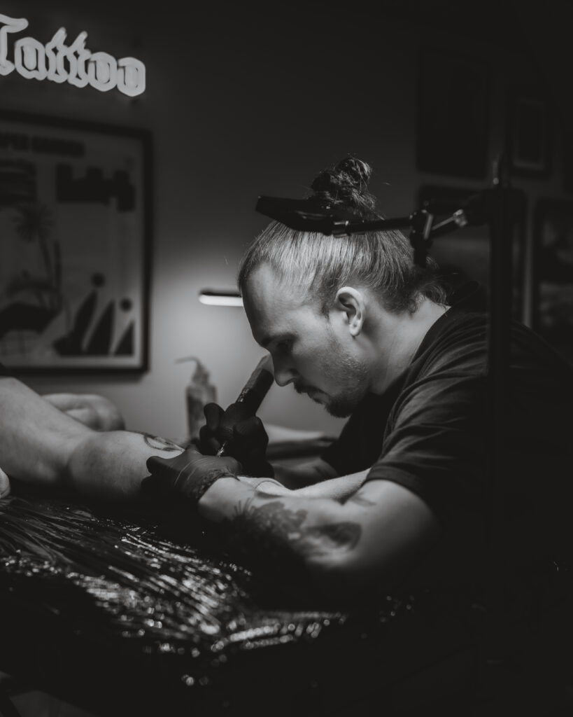 Nach über 13 Jahren Erfahrung als Tätowierer habe ich meinen Stil immer weiterentwickelt. Heute ist er eine Kombination aus Blackwork und Traditional Fine Line.